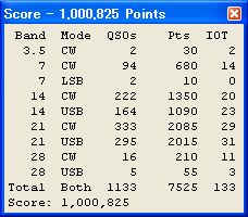 < DX SUMMIT > ja CW SSB総計 JH6AUS 30 30 JA5FBZ 28 28 JG1ILF 16 16 JA3AOP 12 12 JE1CKA 10 10 JH4UTP 8 2 10 JA7OWD 9 9 JH1GBZ 7 1 8 |
