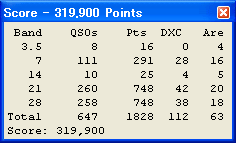 CountryPrefix Total CW USB 3W 3 2 1 9A 1 1 0 9M2 2 2 0 9M6 4 2 2 9V 1 1 0 A6 1 0 1 BV 2 2 0 BY 5 4 1 CE 9 3 6 CX 8 4 4 D4 1 1 0 DL 24 21 3 DU 6 2 4 EA 9 6 3 EI 1 1 0 ES 1 1 0 F 7 5 2 FK 1 0 1 FO 1 1 0 G 10 7 3 GM 1 1 0 GW 2 1 1 HA 5 5 0 HS 7 5 2 I 4 4 0 JA 51 28 23 KH0 2 1 1 KH2 4 2 2 KH6 4 3 1 KP4 2 1 1 LU 36 16 20 LX 1 0 1 OH 4 3 1 OH0 1 1 0 OK 1 1 0 OM 1 1 0 ON 3 2 1 OZ 1 1 0 PA 13 12 1 PJ2 1 0 1 PY 15 9 6 S5 1 1 0 SM 2 2 0 SP 1 1 0 UA 7 7 0 UA9 8 6 2 UR 2 2 0 V5 1 1 0 V6 1 0 1 VK 42 12 30 VR 3 2 1 VU 1 1 0 XU 1 1 0 YB 1 0 1 YV 1 0 1 ZL 15 7 8 ZS 6 3 3 Total 349 209 140 |