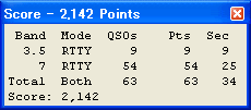 これまた今年やっておかなければ悔いが残ると思い、部分参加しました。できればいいなと思っていた2KQSOには遥かに届きませんでしたが、半分ちょいの運用としてはまずまずな感じで参加を満喫しました。トラブルで開始早々の 2h 2回の QRX は残念でした。 日曜昼の2時間は、帰りの運転が心配でとった仮眠です。 |
