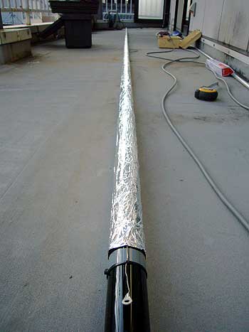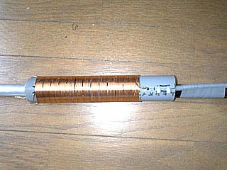 MicroVertの製作 2本目 1本目は2ヵ月後には、コイルとポールの接合部がグラグラになってきて危ないので下ろしていました。KCJで1.9Mにも出たくなったので、懸案のグラスファーバーポール内蔵型を作ってみました。 寸法は、グラスファーバーポールの内径にあわせて下記のアルミパイプを繋いだ、全長6300mmです。 9φ 900mm 1本目よりしなりも少なく、まっすぐ天に伸び上がり、見た目にもすっきりと綺麗にしあがりました。