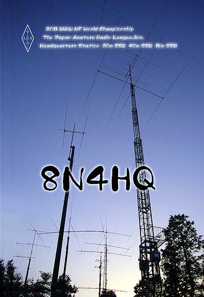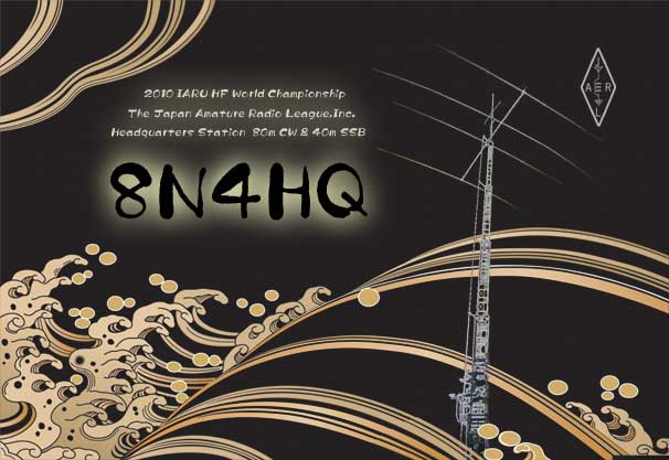 最初の図案には「2016年国際アマチュア無線連合主催短波選手権日本本部局」がありました。英語に変更するようJARL事務局の指示があったので、英語はレポート面に書き、この図案にあった日本語表記のみを主張しました。結果、注釈をいれるという醜い代案を提案されたため、やむなく図案から削除しました。- 2016作